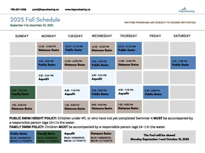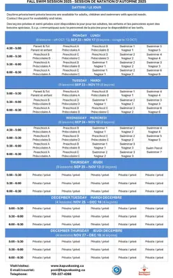 Online registration for the 2025 Fall Swim Sessions opens online on September 4, 2025 at 6 p.m.